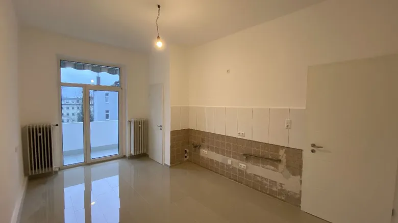 3.OG rechts: ca. 66,70 m² Wohn- und Schlafzimmer, Küche mit Zugang zum Balkon, großzügige Diele, Tageslichtbad mit Wanne, Keller. Energieausweis in Vorbereitung!