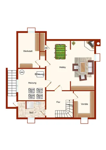 Im Erdgeschoss befinden sich ein großer Wohnbereich mit vorgelagertem Wintergarten (17 m², nicht in der Wohnfl. enthalten), ein schöner Essbereich mit Zugang zu Küche und Wohnzimmer sowie kleiner Hauswirtschaftsraum, Gäste-WC [...]