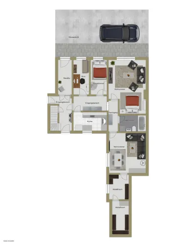 TerrasseRückansichtHauseingangWohnzimmer EG rechtsKüche EG rechtsBadezimmer EG rechtsKüche EG linksWohnen EG linksBad OG rechtsKüche OG rechtsFlur OG rechtsWohnzimmer OGSchlafzimmer DG Wohnzimmer OGBadezimmer OGLageOG linksOG Wohnung rechtsDachboden rechtsEG linksEG rechts
