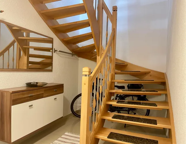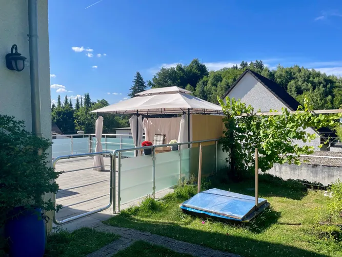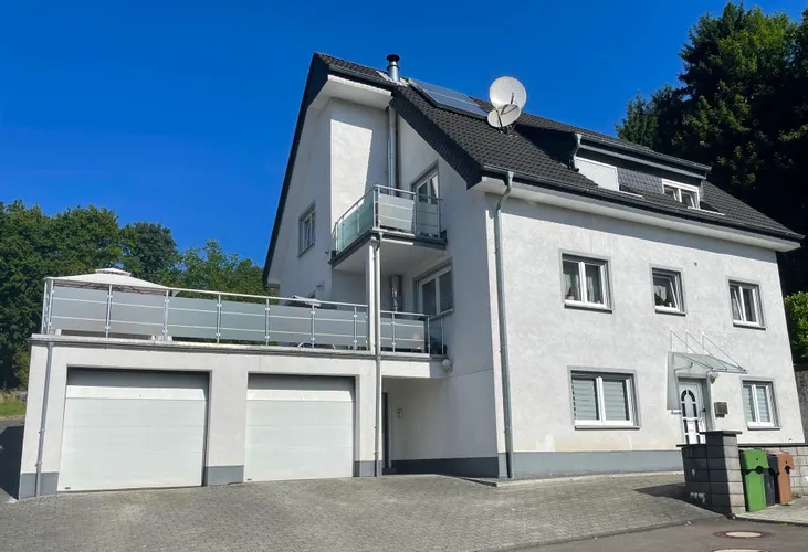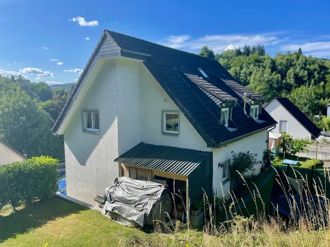 Ansicht vom GartenSüdansichtübergroße GarageBlick zur HaustürEingangsbereichTreppe zur Hauptwohnungoffener Wohnbereich mit KaminEsszimmerBlick ins WohnzimmerWohnzimmer mit Terrassentürgroße TerrasseZugang zur TerrasseTerrasseGartenNordansichtKücheBad mit DuscheGästezimmerTreppe zum DachgeschossFlur DGSchlafzimmerKinderzimmer 1Kinderzimmer 2Balkon DGAusblick vom Balkongeräumiges BadBad mit EckbadewanneEinliegerwohnung im UGEingang ELW mit großer Garage