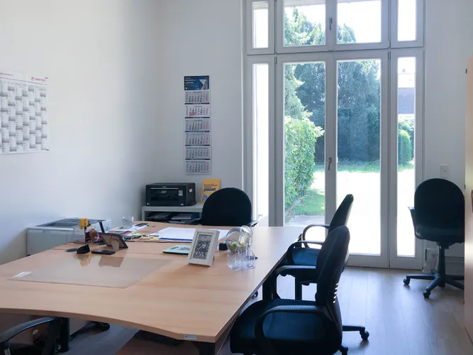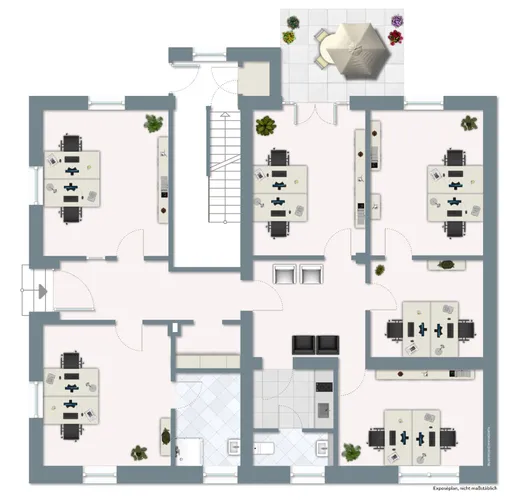 ErdgeschossFrontansichtEingangFlurBüro 1Büro 2Büro 3Büro 4Büro 5WartenTeekücheBadGartenansicht / Terrasse