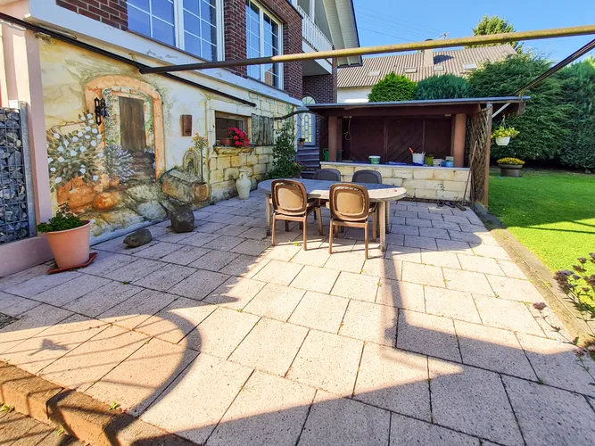 GesamtansichtGesamtansichtVorderansichtSeitenansichtBlick in den InnenhofRückansichtRückansichtSonnenterrasseBlick in den GartenBlick in den GartenTreppe in den GartenTreppe in den GartenEingangsbereichFlurFlurTreppe nach obenSchlafzimmerZimmerneuwertiges Duschbadgroße Küchegroße Küchegroße KücheEssbereichEssbereichWohnbereichWohnbereichEmporeBlick in den WohnbereichZimmer UGGarage